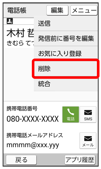 楽ともリンクに登録した電話帳(連絡先)を削除すると、楽ともリンクの登録も解除されます。ご注意ください。