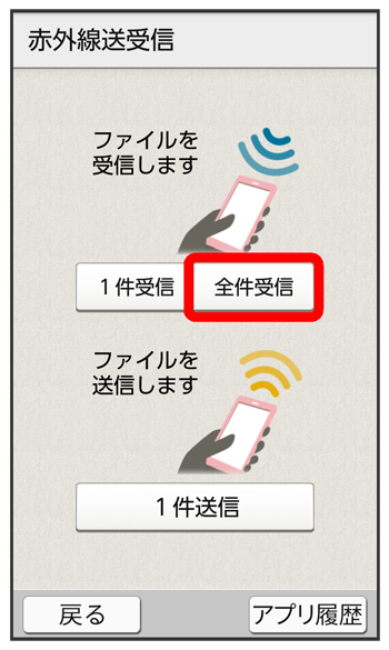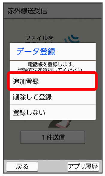 赤外線通信で電話帳データを受信する