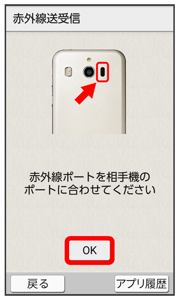 本機と送信側の機器の赤外線ポートを合わせる