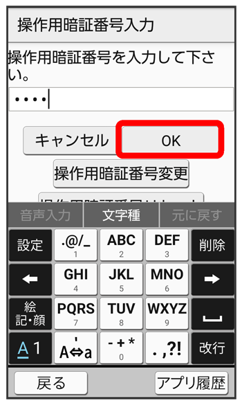 操作用暗証番号を入力