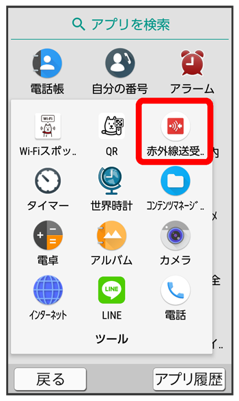 赤外線送受信画面が表示されます。
