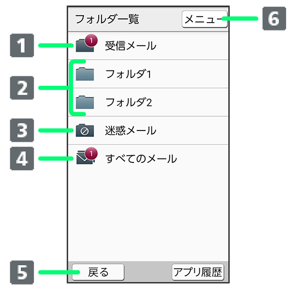 - 未読メールがあるときは、アイコンに未読メール数を示す数字が表示されます。