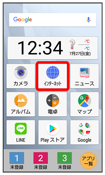 インターネット画面で、画像をロングタッチ- 保存が完了すると、ステータスバーに
