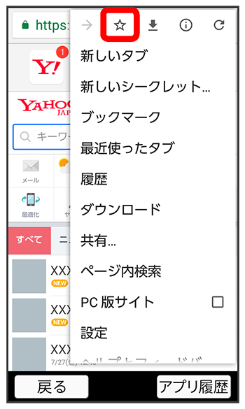 インターネット画面で- SoftBankフォルダとSoftBankフォルダ内のブックマークは移動できません。