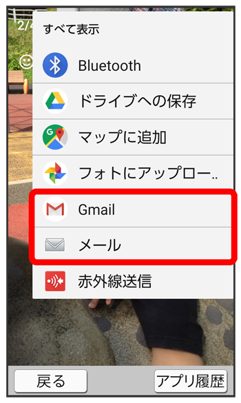 - 複数のメールアカウントを登録している場合は、最後に使ったメールアカウントを使用して送信します。