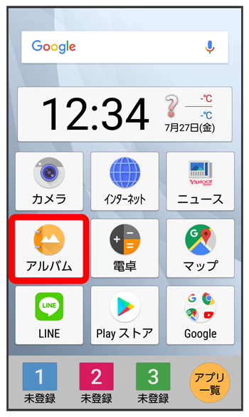 写真/動画一覧画面で対象の写真/動画をロングタッチ(