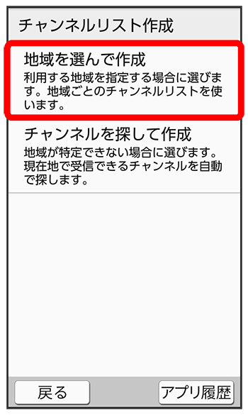 チャンネルリスト作成画面で