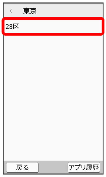 地域選択画面が表示されます。