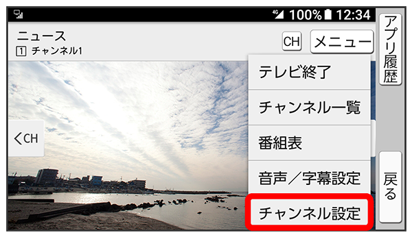 チャンネル設定画面で登録先をタップ- 視聴中のチャンネルが、利用しているチャンネルリストに登録されていない場合に利用できます。