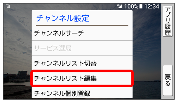 チャンネル設定画面でサービスをタップチャンネルリストを切り替える