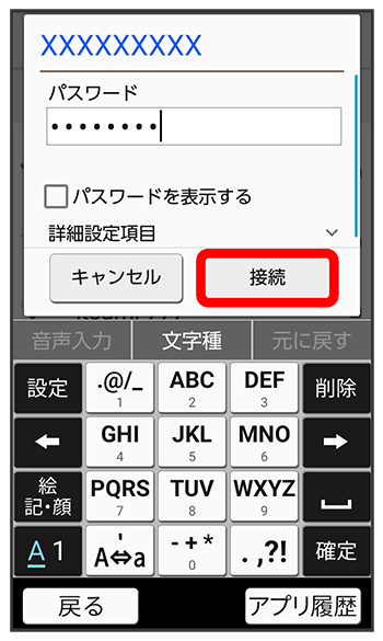 - PIN入力で接続する場合は、Wi-Fi画面でと操作したあと、画面に従って操作してください。