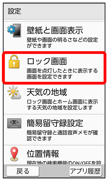 | 天気表示 | ロック画面に天気情報を表示するように設定します。 |
