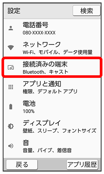 Bluetooth®接続などに関する設定ができます。設定できる項目は次のとおりです。