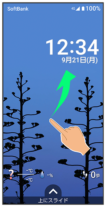 ロック画面を上にフリック