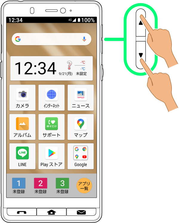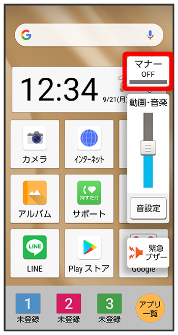 (長押し)と操作しても、マナーモードを解除できます。 - ホーム画面で
