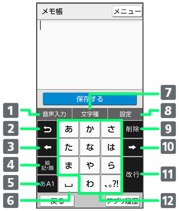 - 絵文字/記号/顔文字を入力(ロングタッチすると、入力拡張プラグインを表示)