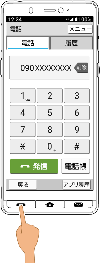 電話番号発信画面が表示されます。