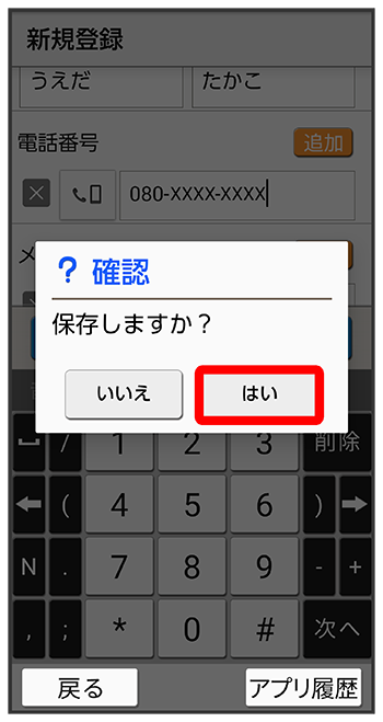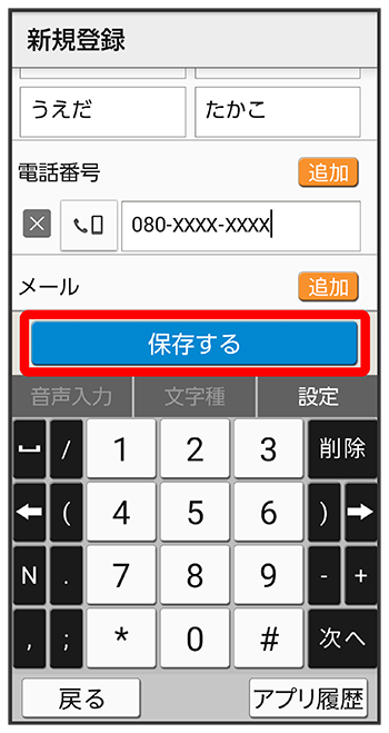 連絡先が登録されます。
