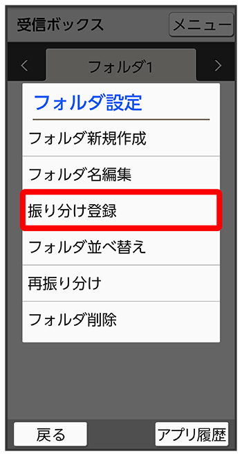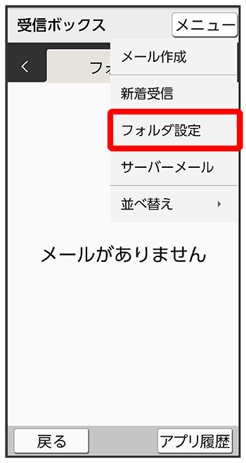 振り分け先のフォルダをタップメール一覧画面が表示されます。