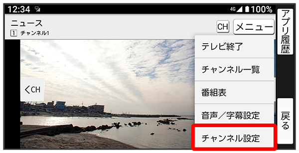 チャンネル設定画面で