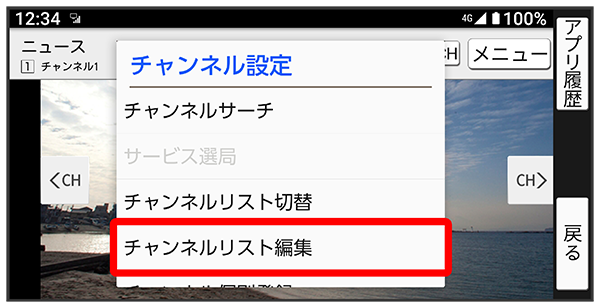 チャンネル設定画面でチャンネルリストをタップチャンネルリストを削除する