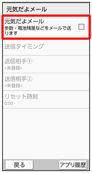 元気だよメール画面で- をタップするたびに、有効(
