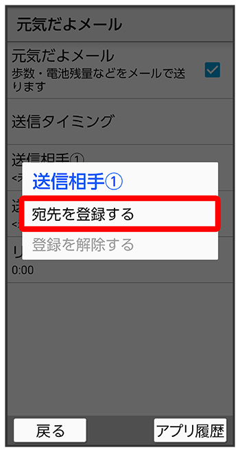本機を使用したとき、自動的にメールを送信する相手(送信相手)を登録します。