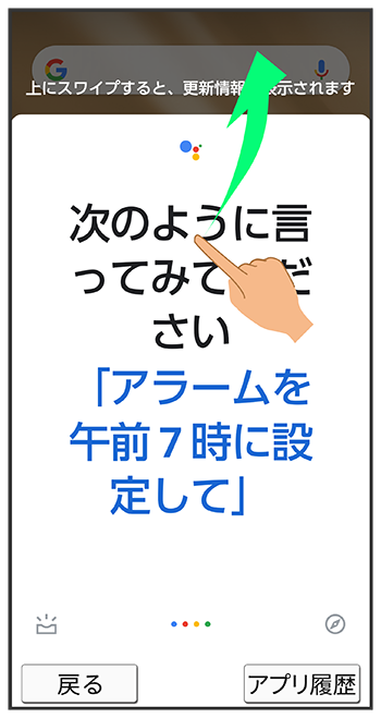 Google アシスタント画面を上にフリック
