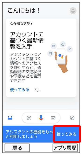 Google アシスタント画面が表示されます。