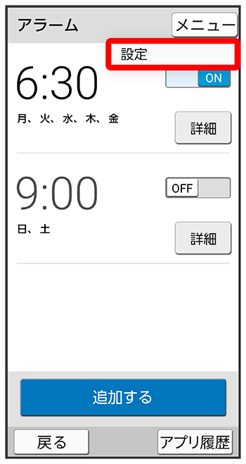アラームのはたらきを設定する