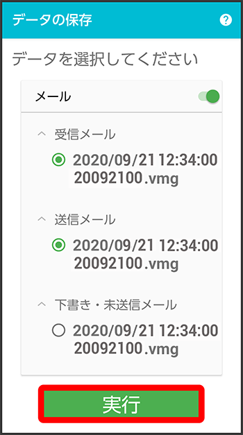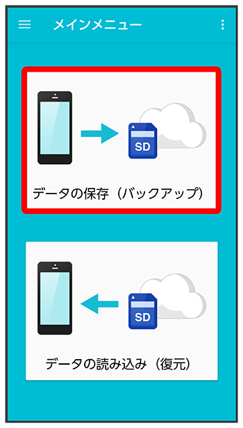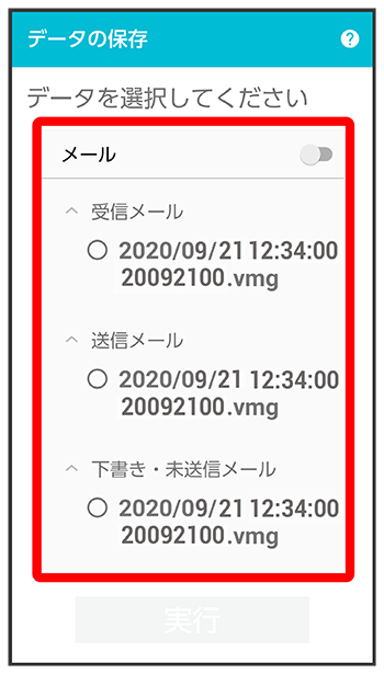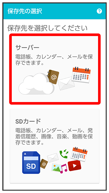 SDカードに保存したメールデータをサーバーに保存します。あらかじめ、サーバーに保存したいメールデータをSDカードに保存してください。SDカードへの保存について詳しくは、「SDカードに保存する」を参照してください。