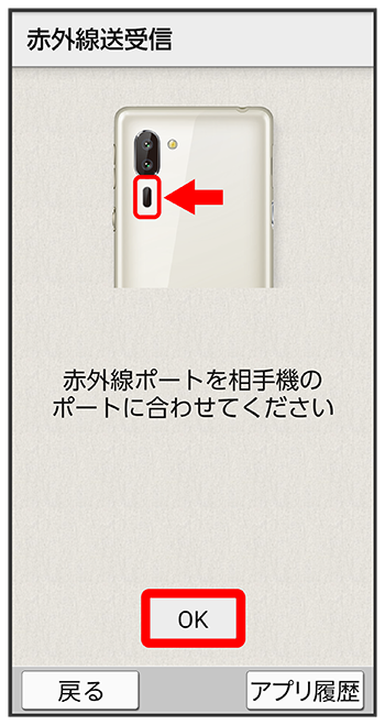 通信時は、本機と送信側の機器を近づけ、双方の赤外線ポートがまっすぐに向き合うようにしてください。