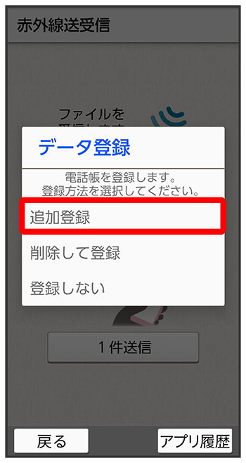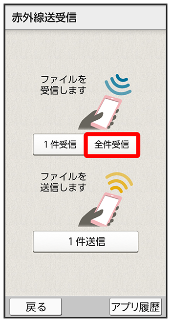 赤外線通信で機能ごとのデータを一括して受信する(例:電話帳)