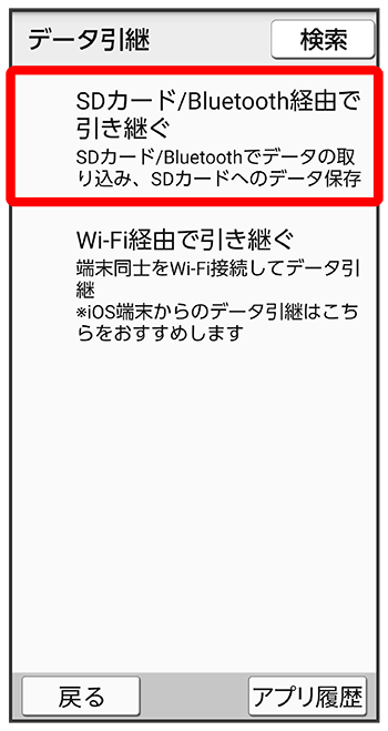 - iPhone端末からデータを引き継ぐ場合は、をタップしてください。以降は画面に従って操作してください。