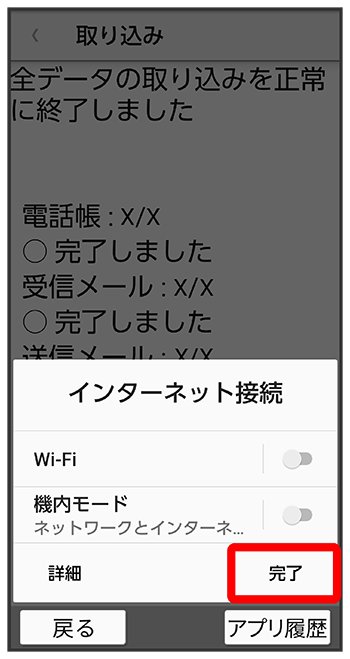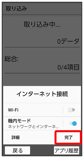 内部ストレージの空き容量が少なくなっているときは取り込めません。また、電池残量が不足しているときは、操作が中止されます。電池残量が十分あるときに操作することをおすすめします。
