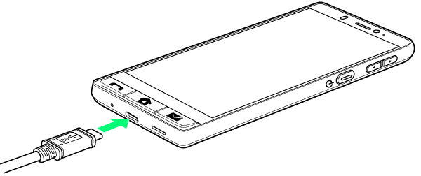 本機の外部接続端子に、USB Type-CケーブルのUSB Type-Cプラグを差し込む