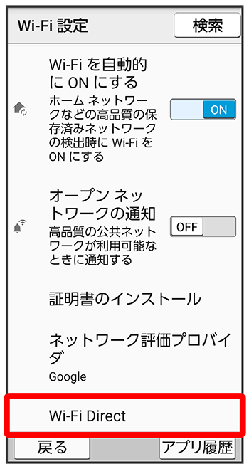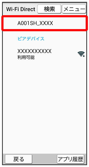 「ピアデバイス」欄に、近くにあるWi-Fi Direct規格対応機器が表示されます。