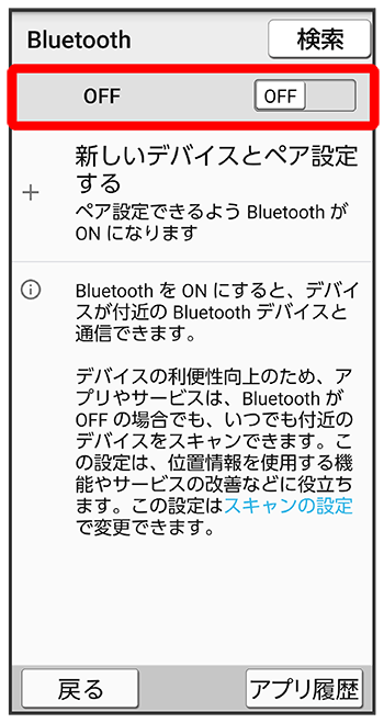 - Bluetooth®機能を無効にするときは、をタップします(表示)。