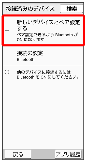 - 登録(ペア設定)済みの機器は、「以前に接続されていたデバイス」欄に表示されます。