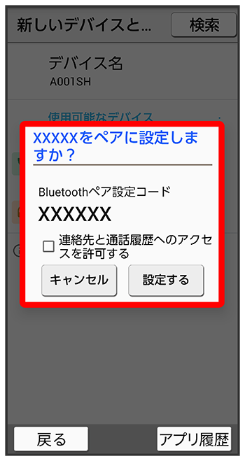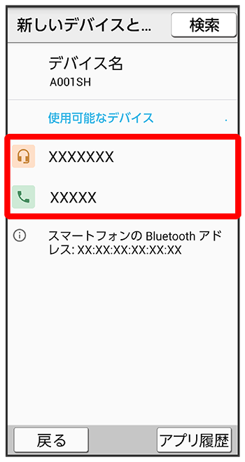 「使用可能なデバイス」欄に近くにあるBluetooth®機器が表示されます。