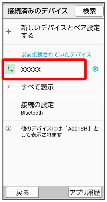 接続済みのデバイス画面で、ペア設定を解除する機器のこちらで検索できます