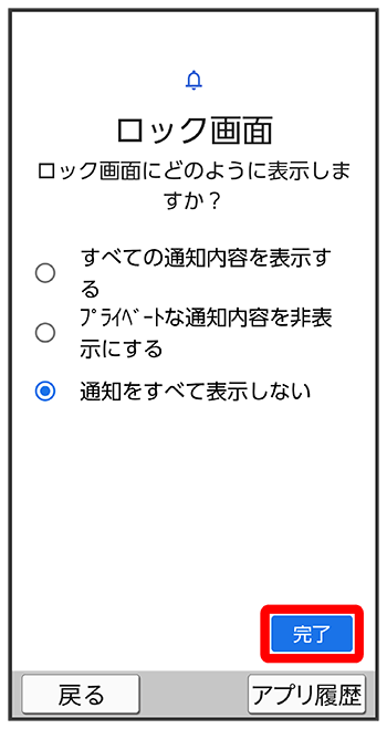 - 変更前の画面ロック解除方法がまたは以外のときは、設定が完了します。