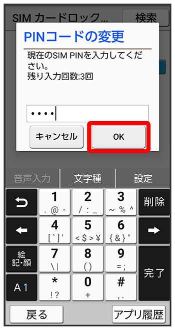 現在のPINコードを入力新しいPINコードを入力新しいPINコードを再度入力