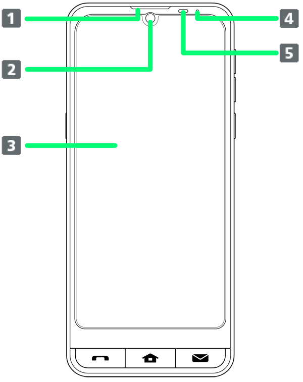 | 近接/明るさセンサー1 | 近接センサーは通話中にタッチパネルの誤動作を防ぎます。明るさセンサーは周囲の明るさに合わせて、ディスプレイの明るさを調節します。 |
