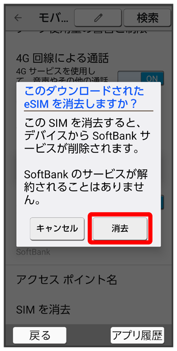 eSIMを消去した場合でも、ご契約が解除されたわけではありません。