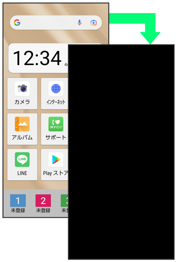 本機を一定時間何も操作しないと、電池の消費を抑えるため画面が消灯します(画面ロック状態)。