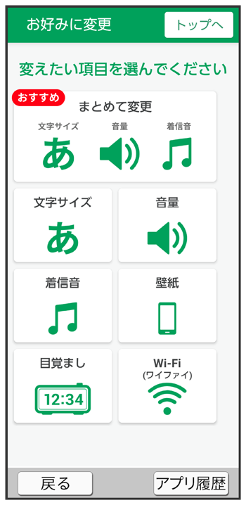「お好みに変更」からスマホの基本的な設定をかんたんに変更することができます。