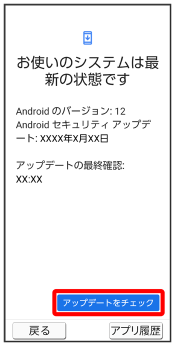 システムアップデートが必要なときは、通知が表示されます。通知をタップし、画面に従って操作してください。通知が表示されない場合などは、次の手順で必要かどうかを確認してアップデートできます。