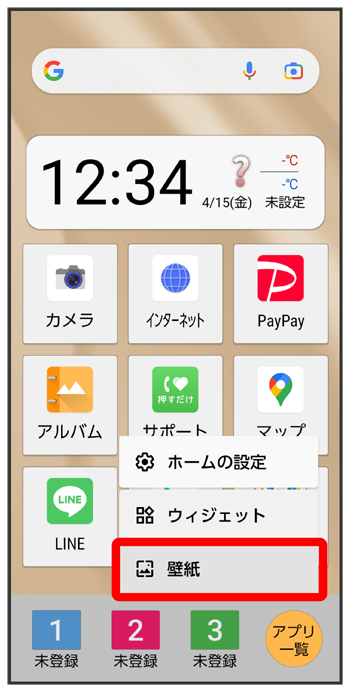 - をタップすると、ホーム画面にのみ選択した壁紙を設定できます。