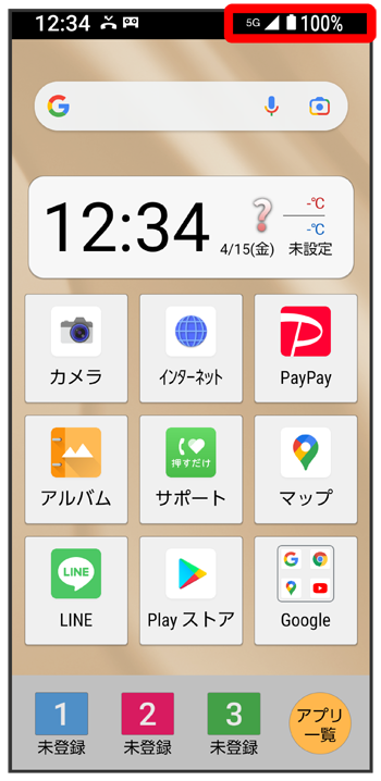 - お使いの端末画面上(画面上部)に待ち受け時は「5G」と表示されている場合でも、通信を行う際は表示が「4G」に切り替わり、4G通信が使用される場合があります。